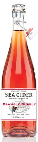 Bramble Bubbly is produced by milling then juicing Island apples, after which, champagne yeast is added to begin fermentation. Fermentation is done at cool temperatures to maximize the aromatics of the cider base. Thereafter, blackberries are crushed and the juice added to achieve a rosé colour and a hint of blackberry flavour.